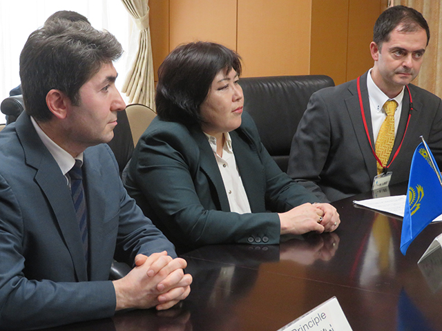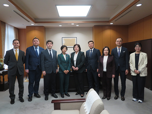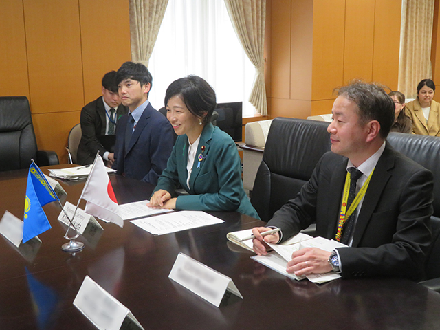 4月15日、福田大臣政務官は、カザフスタン共和国からズルフィヤ・トレベコワ国立教育アカデミー会長を団長とする教育視察団の表敬訪問を受けました。