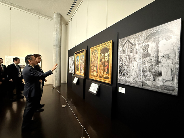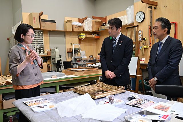 国立西洋美術館では、展示に加え、国立美術館で唯一の保存修復・保存科学部門の現場を視察しました。担当者からは、作品の劣化を防ぐ日常的なメンテナンスや修復工程について説明を受けるとともに、専門人材の不足や育成の課題についても伺いました。