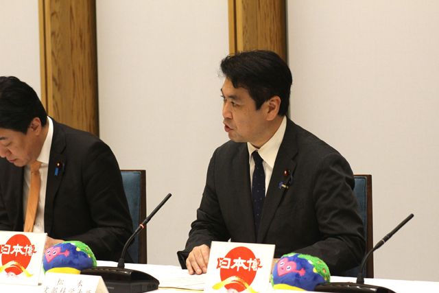 3月25日、松本大臣は第10回ものづくり大賞表彰式に出席し、文化を支えるものづくり分野で内閣総理大臣賞を受賞された造形家の竹谷隆之氏への表彰状授与に立ち会いました。