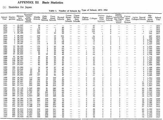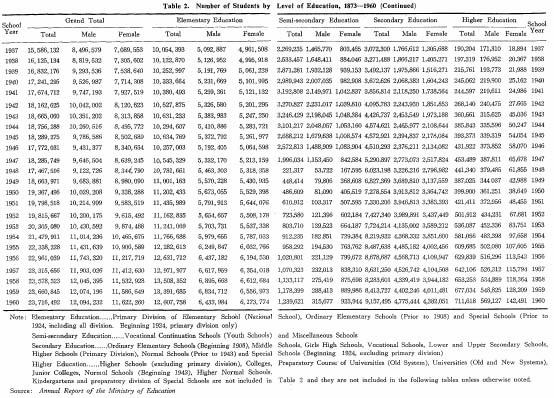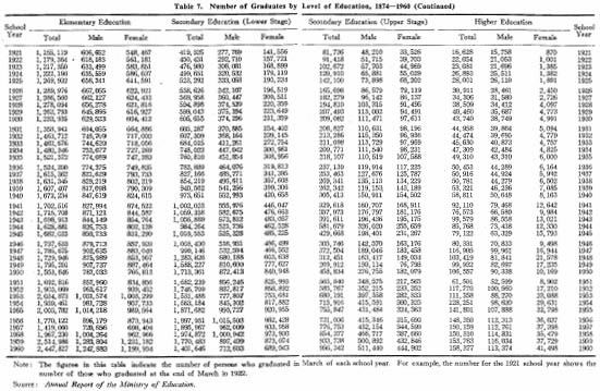 Table 7. Number of Graduates by Level of Education, 1874-1960