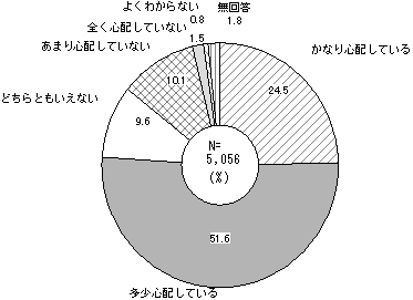 - 「かなり心配している、多少心配している」は76.1パーセント。