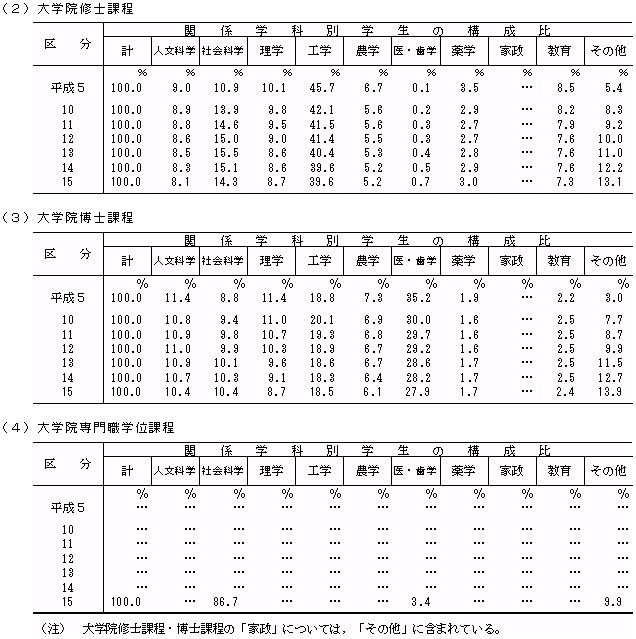 | (4) | 専攻分野別大学院学生の構成(表3,図1,図2)
