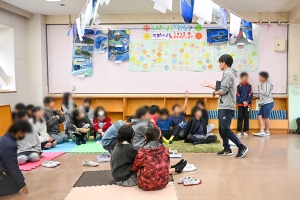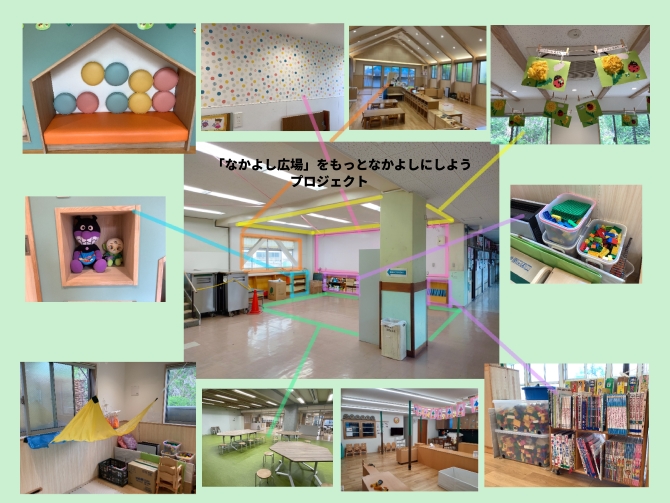 令和元年度から3年度まで幼保小連携事業推進地区であり、また令和4年度から6年度までは接続期カリキュラム研究推進地区として、園と小学校のスムーズな接続を研究していたこともあり、本年度は子供たちと一緒に、1年生も安心できる環境づくりに取り組むことにしたのです。そこで、まずは近隣の若葉保育園で先生体験をするところから始めました。そこで子供たちが気づいたのは、「園はとても温かくて、のんびりできる空間だ」ということ。『学校にもこんな場所があったらいいのにな』という思いが芽生えたと言います。