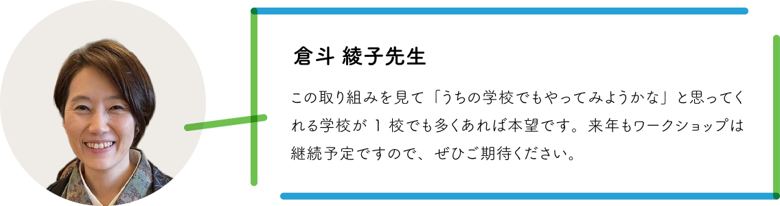 この取り組みを見て「うちの学校でもやってみようかな」と思ってくれる学校が1校でも多くあれば本望です。来年もワークショップは継続予定ですので、ぜひご期待ください。また、南牧南小学校や初音が丘小学校のみなさんには、今後の活動もCO-SHA Platformにお寄せいただけるとうれしいです。