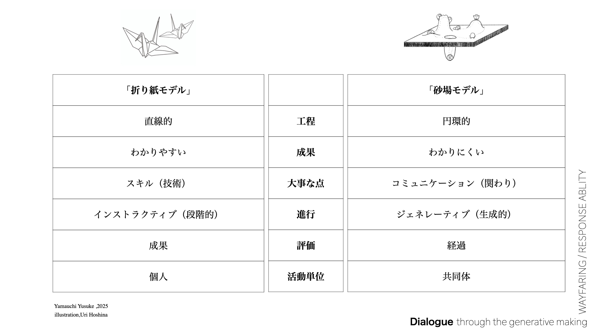 「僕は折り紙モデルを否定したいわけではありません。けれど、集めるとか並べるといったカジュアルな行為も“つくる”のひとつであり、そんな砂場モデルの“かろやかな つくる”も、同じくらい大切にしてもらいたいと思っています。」(山内さん)