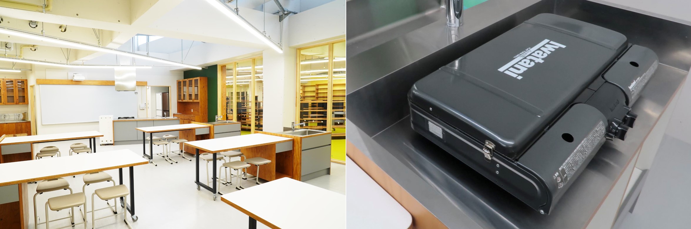 特別教室の稼働率を考え、フレキシビリティを高め、地域活動や教育のニーズに対応する設計とした。学校が利用する「家庭科室」「美術室」「音楽室」は地域住民が利用することで、まちの「キッチン」「アトリエ」「スタジオ」になる。備品のアレンジで教室の用途を広げ、空間の多機能化を実現。また、体育館のステージは、学校でも特に稼働率の低い空間になる。そこで、ステージ上に仕切りを設置して空間を独立させ、音楽室として使用可能にした。発表する際には仕切りをはずせばそのままステージとして使用できる。