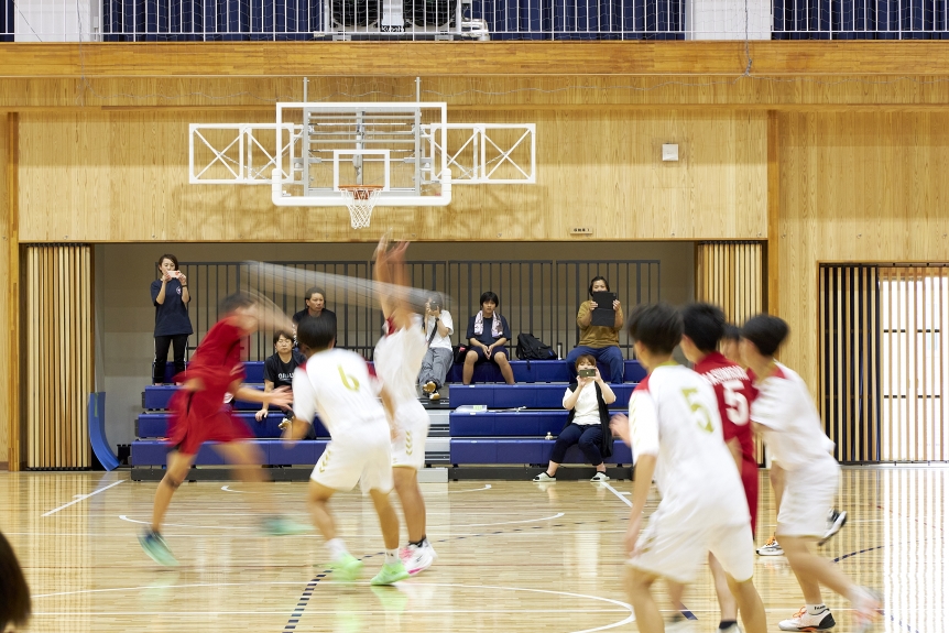 茨城県かすみがうら市は、ハンドボールが盛んな地域。下稲吉中学校の体育館は、ハンドボールの試合や学校行事を行うにあたって手狭であったため、大きな体育館が要望されていた。2024年1月に、災害時の避難所としても機能できる、待望の新体育館が完成した。