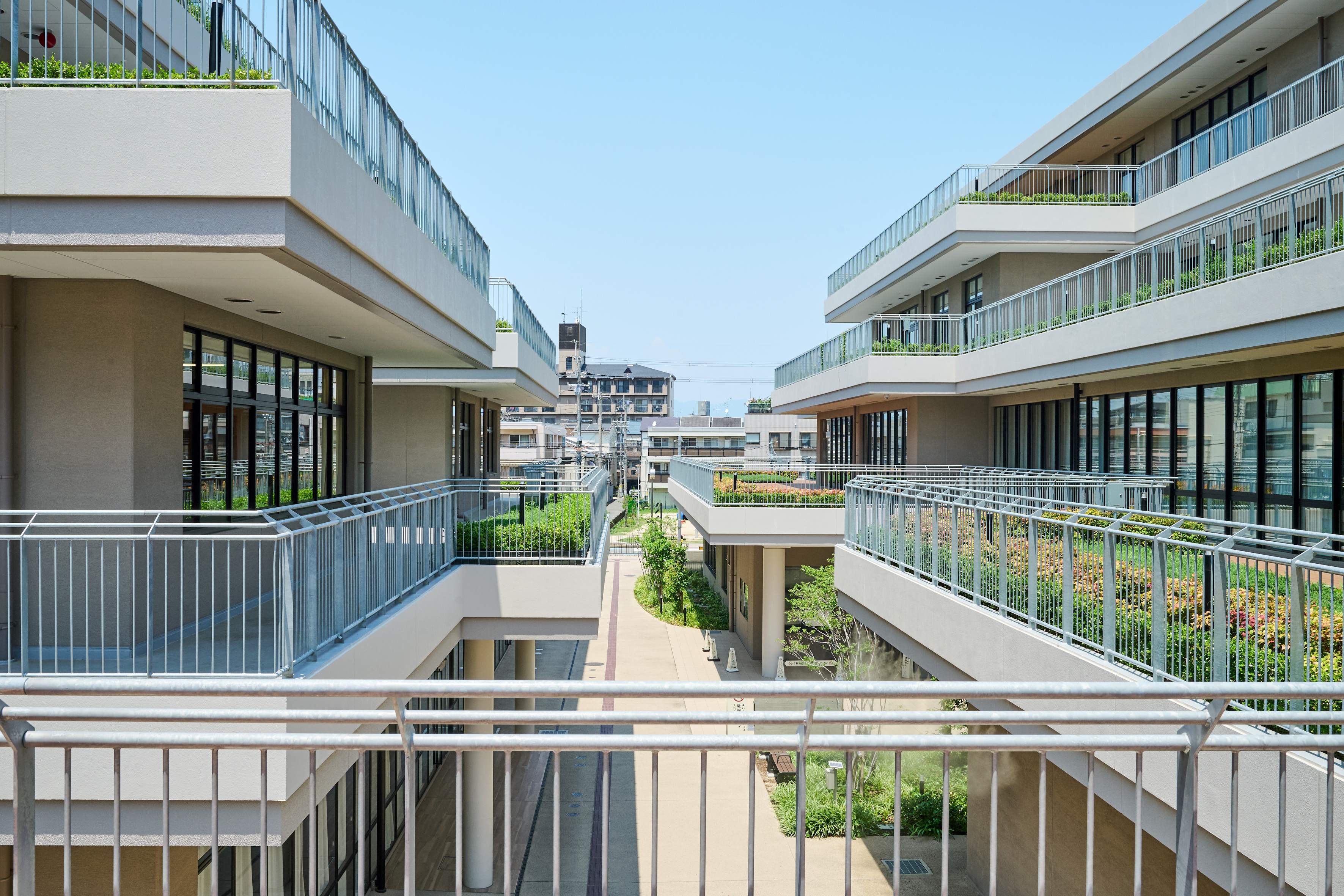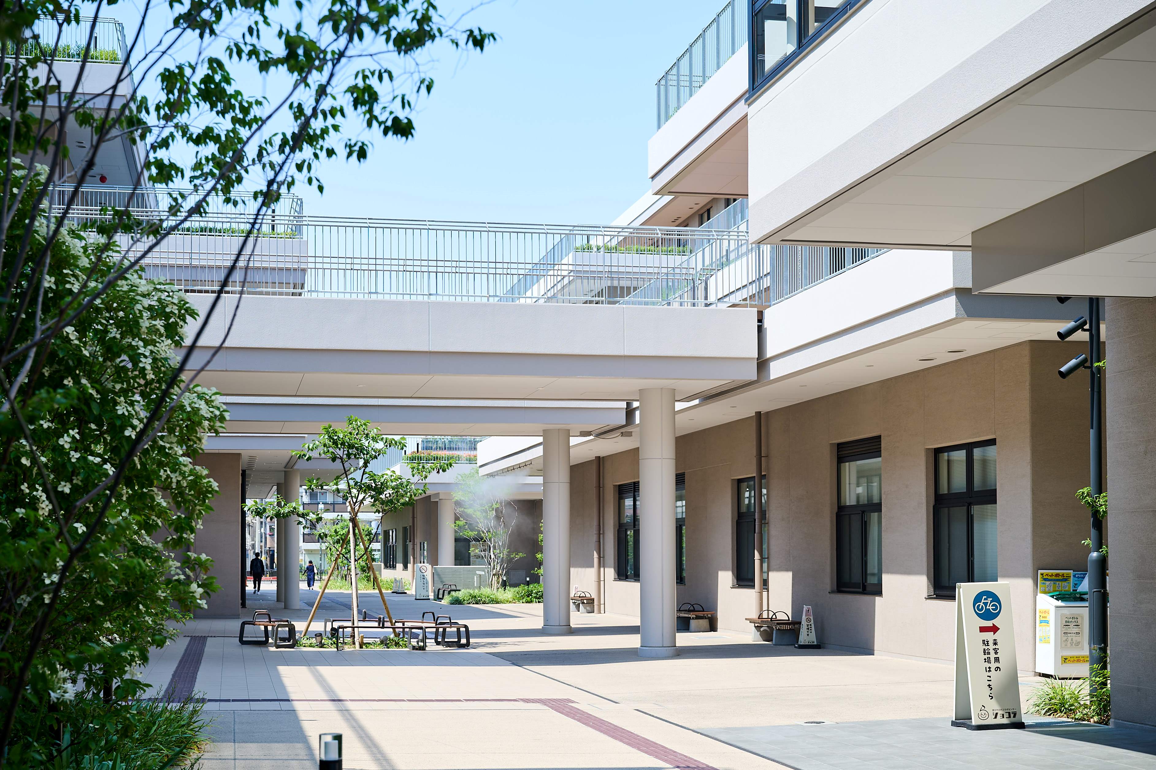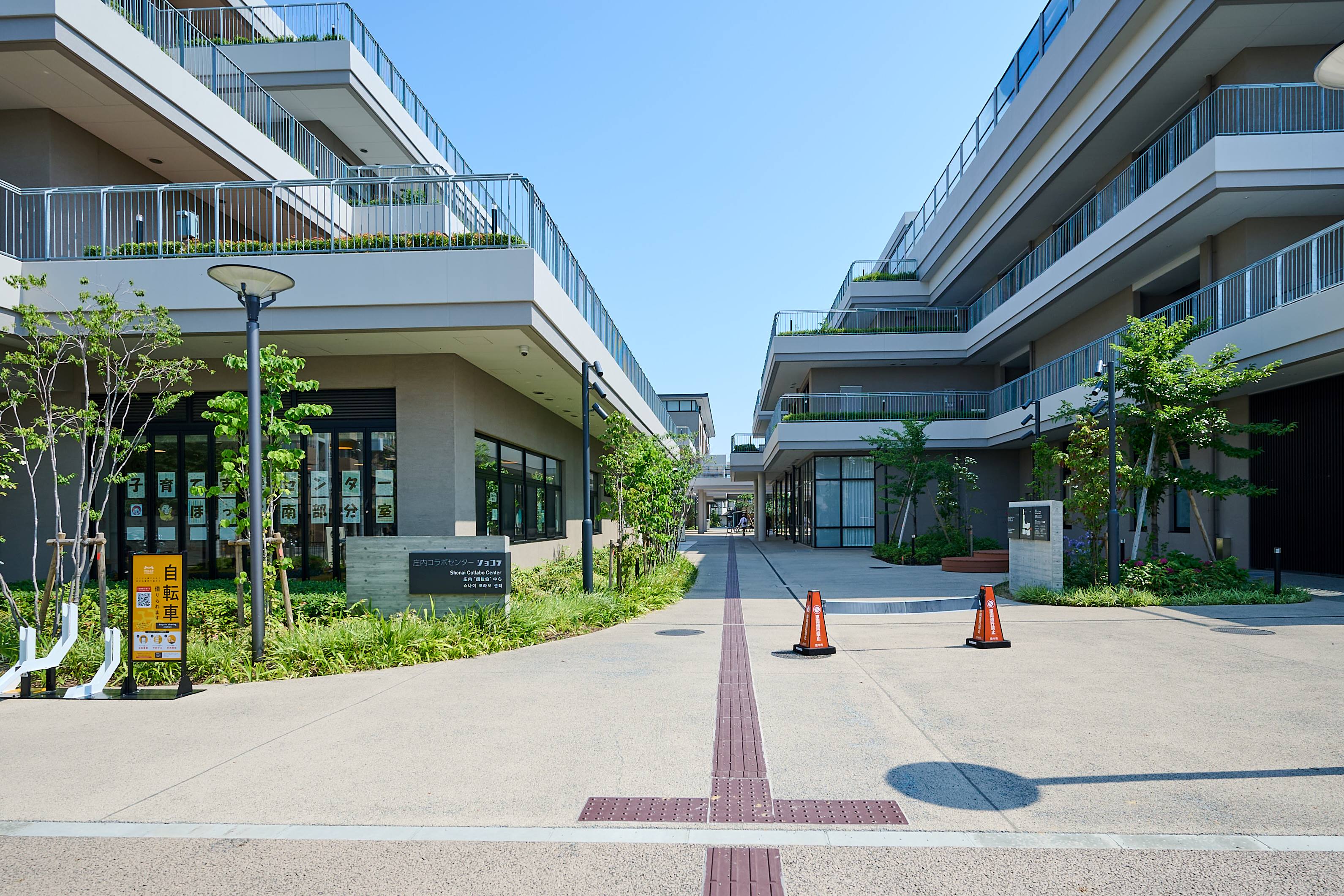 庄内さくら学園の敷地は、旧庄内小学校と第六中学校の跡地にあり、その間を通る生活道路、通称「あいさつロード」は、地域の人々に長年親しまれてきた。地域にとって、この生活動線は欠かせないものであり、「残してほしい」という声が多かったことから、学校とコラボセンターの間に「あいさつロード」がリニューアルする形で整備された。