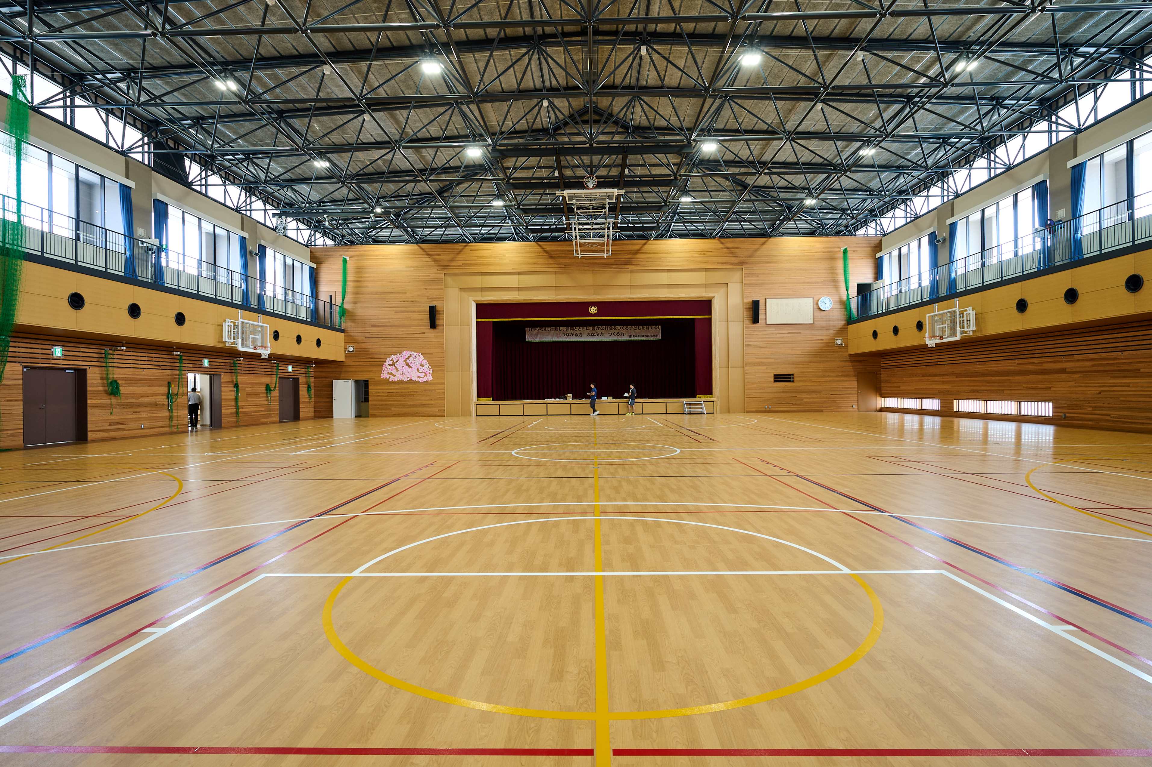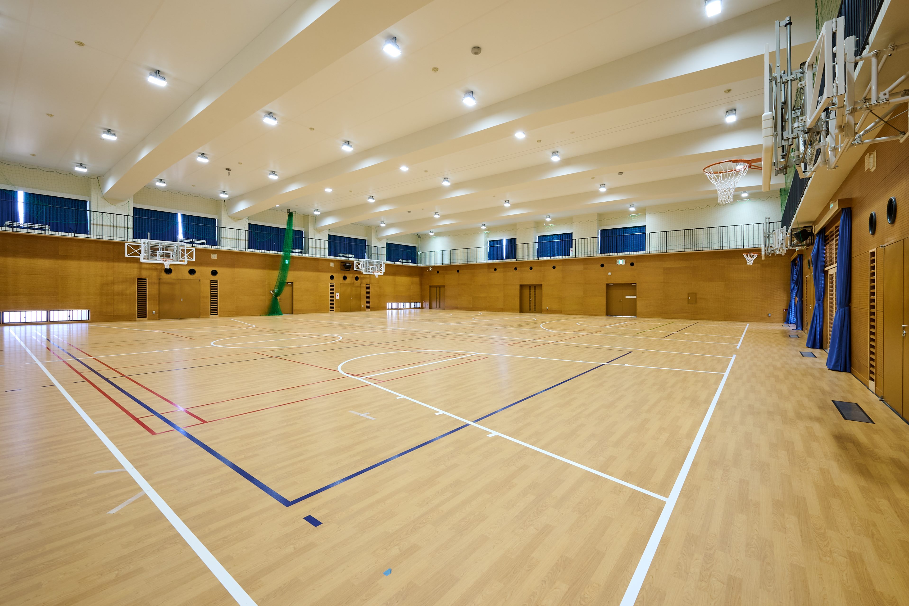 小アリーナは、地域住民の利用を前提に設計されており、独立したエントランスを設けることで、学校内部の動線と明確に分離されている。セキュリティに配慮した構成により、学校と地域の双方が安心して使える空間となっている。小アリーナ・大アリーナは、災害時には避難所としても活用できるよう、空調設備が整えられている。さらに学校施設全体の防災機能としては、プールを活用した給水設備が設計に組み込まれ、開校後に非常用発電設備が新たに設置されるなど、継続的に防災機能の強化が行われている。