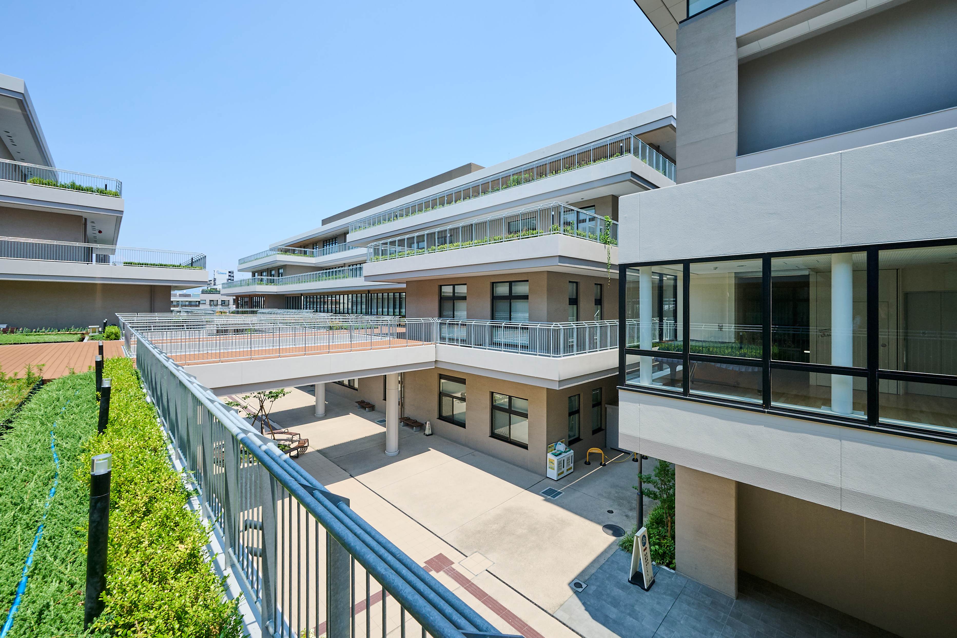 豊中市立庄内さくら学園は、豊中市で初の施設一体型の義務教育学校として、2023年4月に開校。庄内地域の3小学校と2中学校を統合し、地域と連携して子どもを育む環境を目指して、点在していた公共施設を集約し、学校と一体的に整備した。