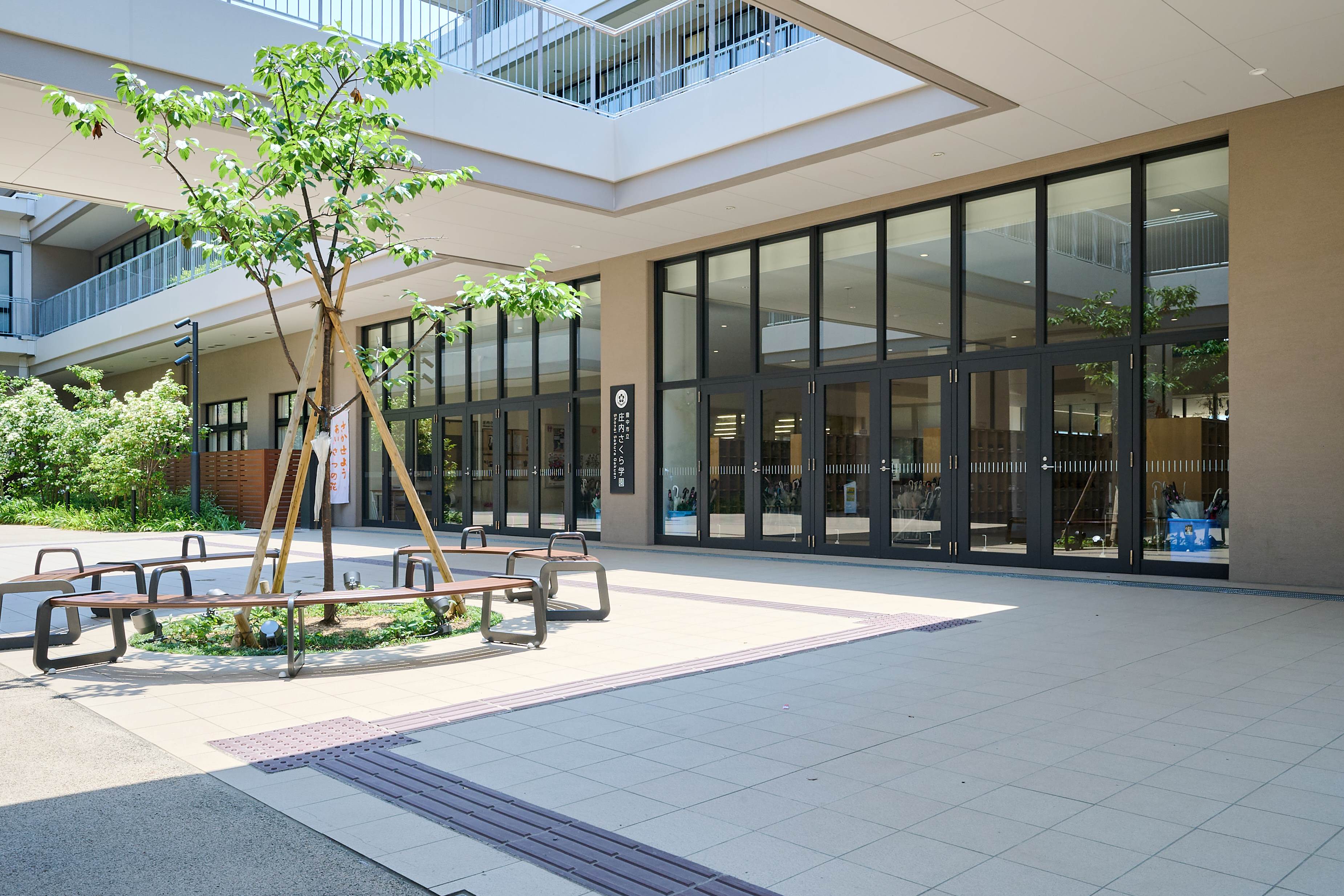 学校と同時に開館した豊中市庄内コラボセンター「ショコラ」は、老朽化が進んでいた複数の公共施設の再編に加え、子育て支援などの新たな機能を統合し、整備された。