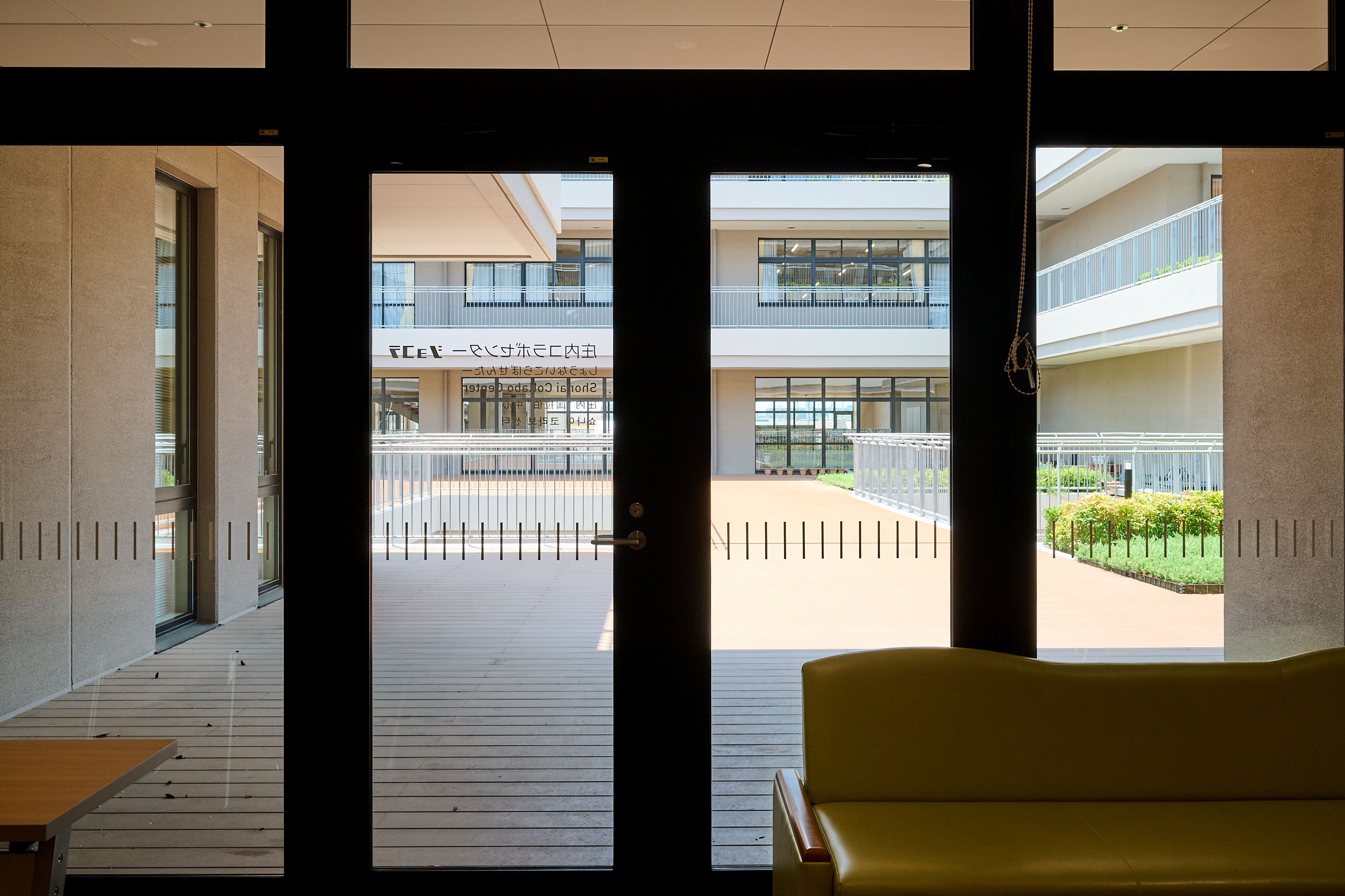 学校とコラボセンターの2施設は、連携しながらも、それぞれの機能と安全性を保つためのセキュリティを考慮した設計になっている。正門となる「あいさつロード」側の入り口は、登下校時以外は各門を施錠し、日中はオートロックによる管理、夜間・休日は施錠と機械警備によって安全が確保されている。また、両施設をつなぐ2階のデッキについても、通常は施錠されており、必要時にのみ開錠する運用がされている。施錠はすべて内側からの操作が必要なため、外側からの侵入を防ぐ構造となっている。夜間には、機械警備によりセキュリティ管理されており、開かれた施設でありながらも、子どもたちの安全を配慮した管理が行われている。