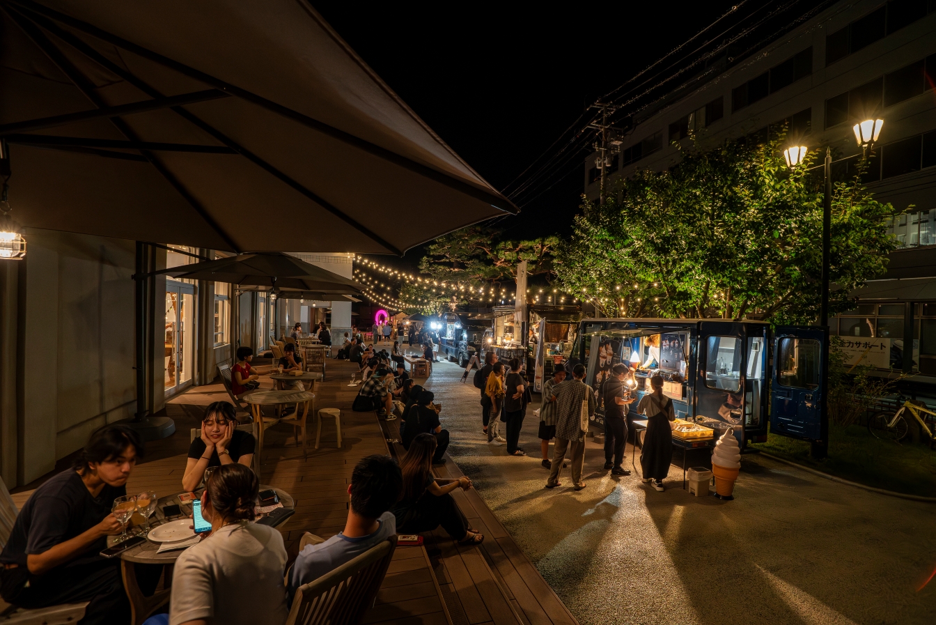 芸工大は、2010年代半ばより中心市街地の再生に向けたエリアリノベーションに取り組んできた。2016年、七日町通り周辺の「シネマ通り」エリアでは、築50年のビルを改修した複合施設「とんがりビル」が完成。学生やクリエイターが関わるリノベーション事業を通じて、地域内に新しい交流と活動の循環を生み出し、周辺では空き店舗の再生や新たな店舗の出店など、さまざまな動きが同時多発的に起こり、エリア全体が変化していく流れが生まれた。