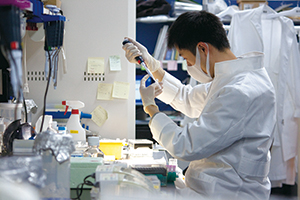 オープンラボで実験を行う様子(提供(ていきょう):京都大学iPS細胞(さいぼう)研究所)