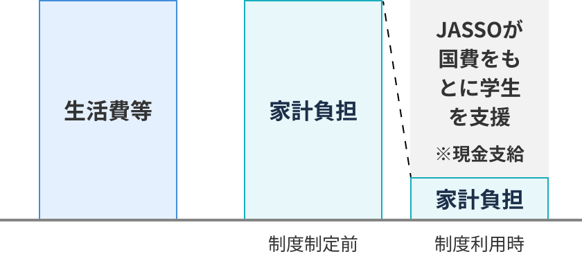 ※本制度による支援を受ける場合、日本学生支援機構(JASSO)の無利子奨学金について、貸与を受けられる金額が減額されます(併給調整)。