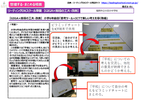 こちらは、小学校6年生の総合的な学習の時間での取り組みです。「自分が思う平和について考えをまとめよう」という学習のめあてで、授業が展開されています。
