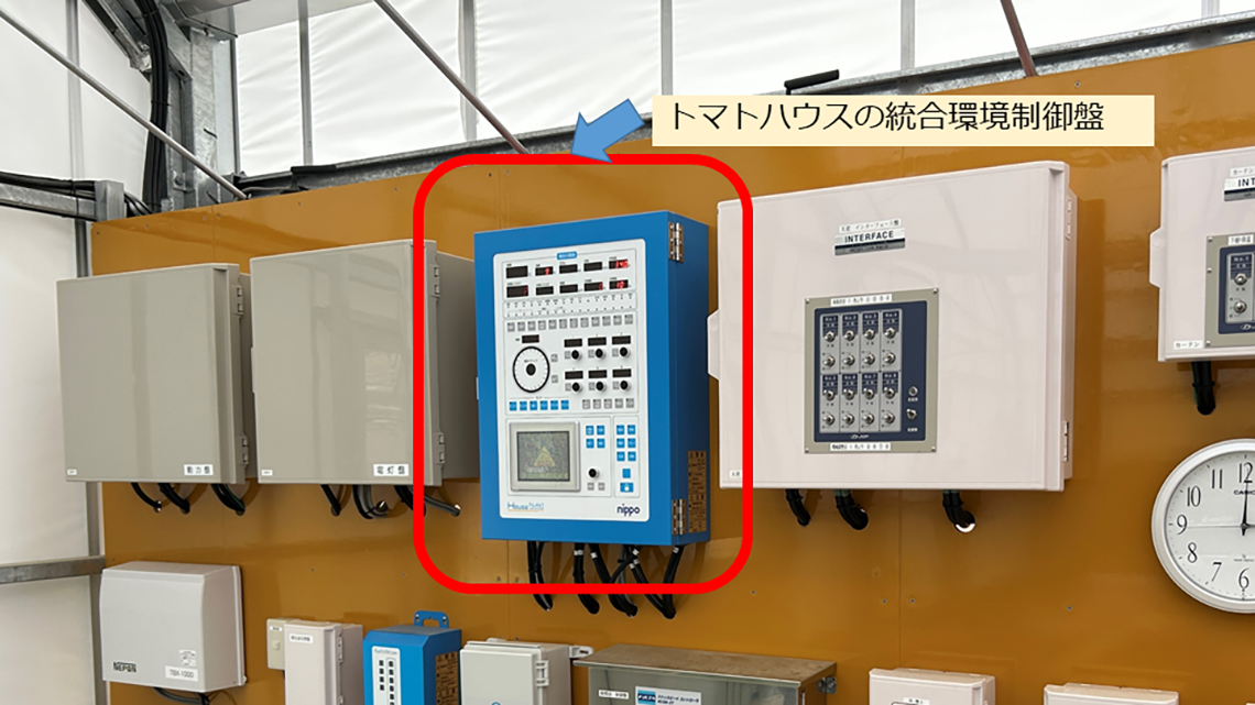 温度や湿度、CO2濃度などのハウス内の環境データは、「統合環境制御盤により自動測定・自動入力される。(提供:高知県立幡多農業高等学校)
