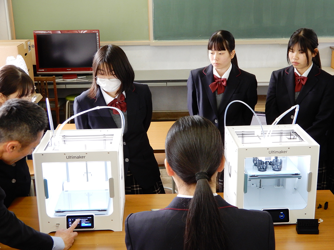 DXハイスクールにより2025年2月時点で、65インチのディスプレイ、デジタル刺繍ミシン、レーザーカッター、3Dプリンタ2台、高性能PC (Surface Laptop)が整備されています。これらの環境を「デジタルラボ」として、教員も生徒も、いつでも利用できるようにすることで、学びをさらに充実させる予定です。
