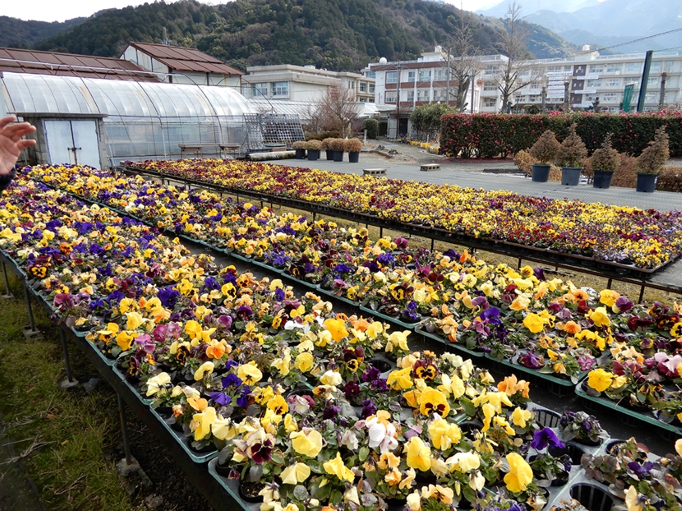 圃場や温室では花や野菜を育成。市場やイベントで出荷・販売している。
