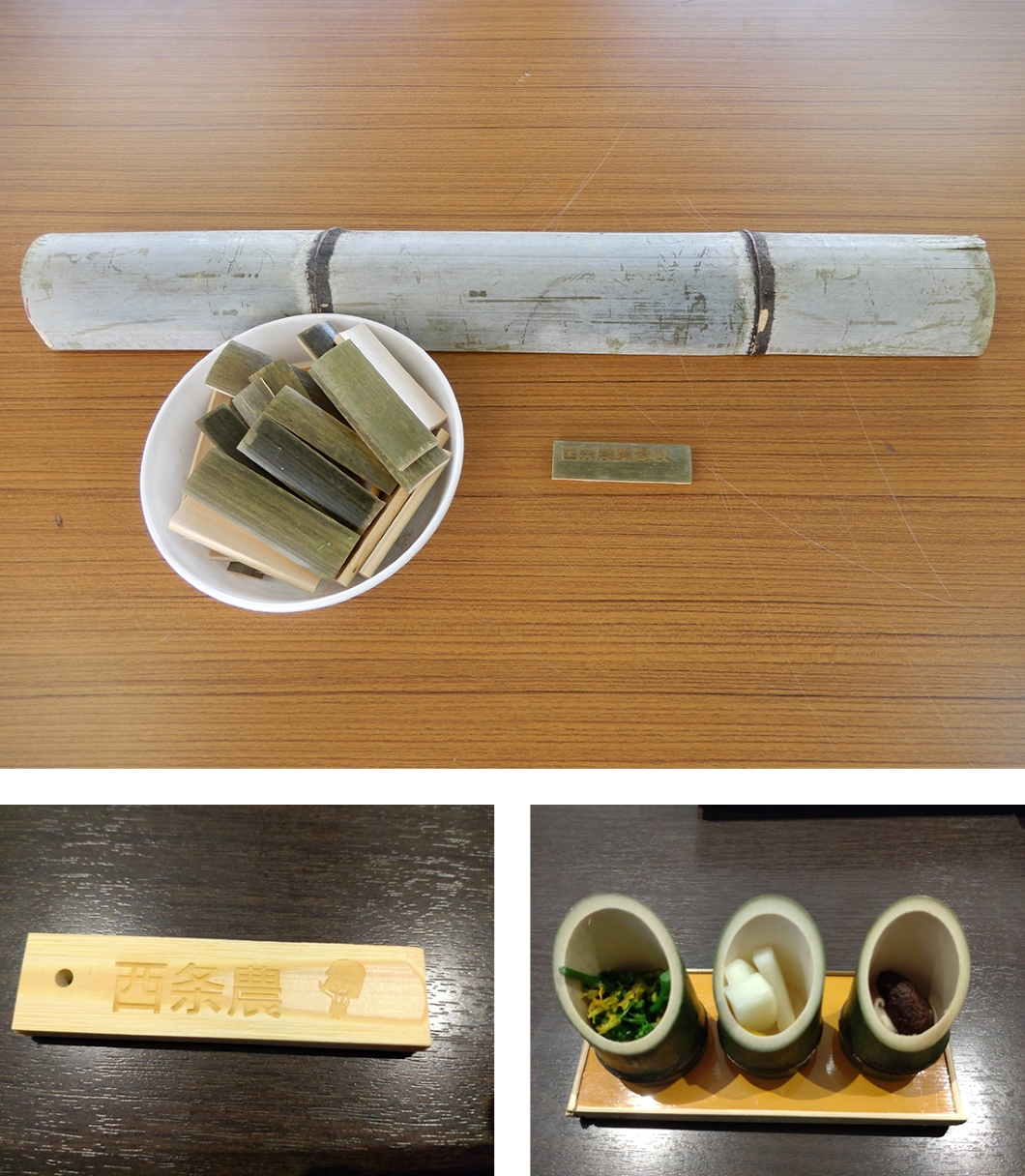 放置竹林の竹材を用いて箸置きや器を製作(提供:愛媛県立西条農業高等学校)