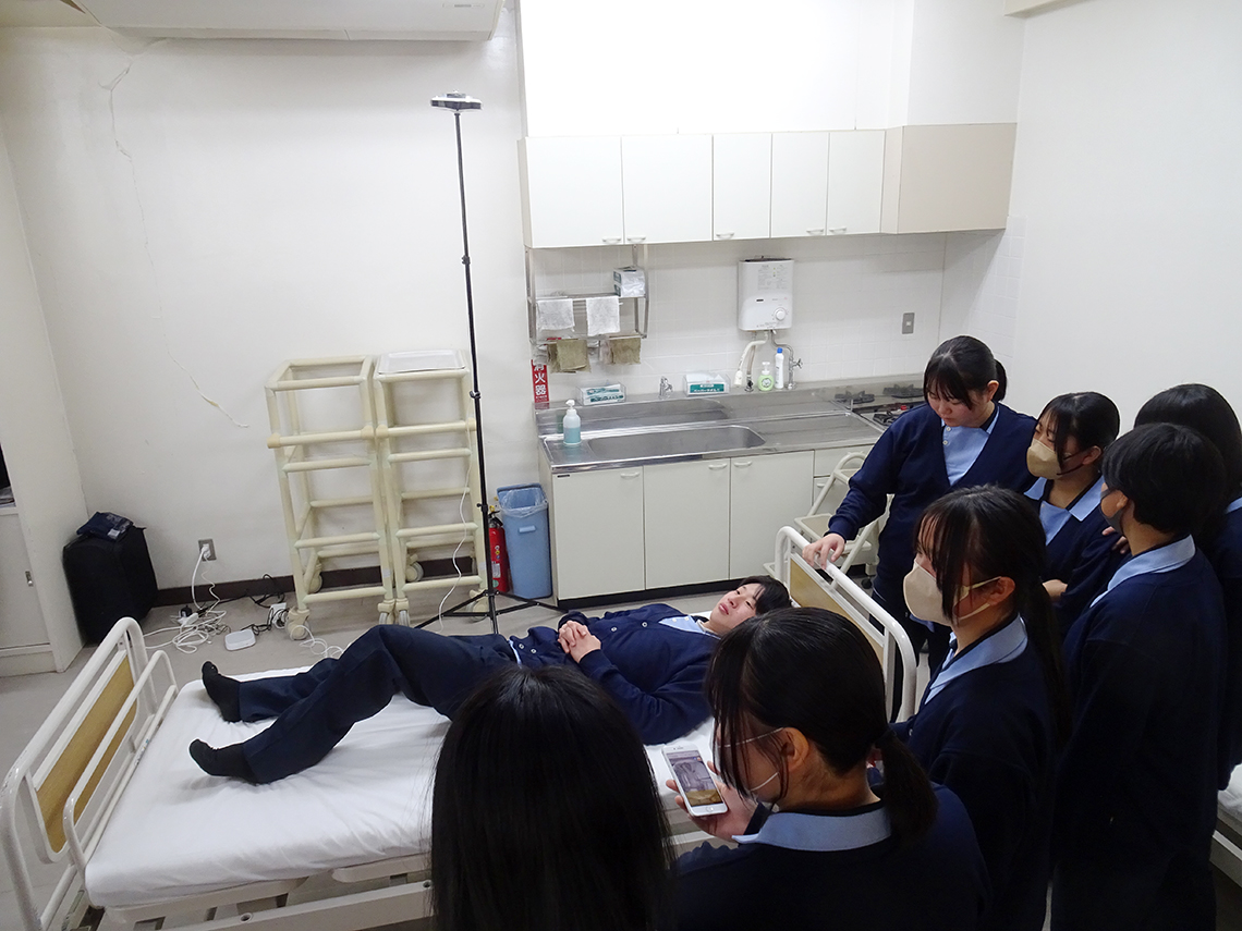 例えば見守り支援機器は利便性の高い機器ではありますが、一方で「24時間監視されている」と感じる利用者もいます。そうしたプライバシーの配慮や利用者の尊厳を守る視点などについて、高校生のうちからしっかりと考えさせることが大切であると感じています。価値観が形成される大切な時期だからこそ、テクノロジーの可能性を活かしながらも、利用者の生活をよりよいものにするという介護の本質からは決して離れてはいけないと思います。 2年次の「介護過程」の授業では、「DXの推進は大切だが、介護の本質はあくまで人と人との関わりにある」という視点を重視し、「機械に使われるのではなく機械を道具として活かすことが重要である」といったICTリテラシーの部分についても伝えています。