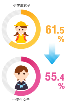 約9割の小学生が家で食事のお手伝いをしていますが、中学生になると手伝いをする子どもの割合が少なくなっています。食事の準備、後片付けなどの手伝いをすることで食への関心を高めましょう。また、家族の一員としての自覚と食の自立に向けて取り組みましょう。